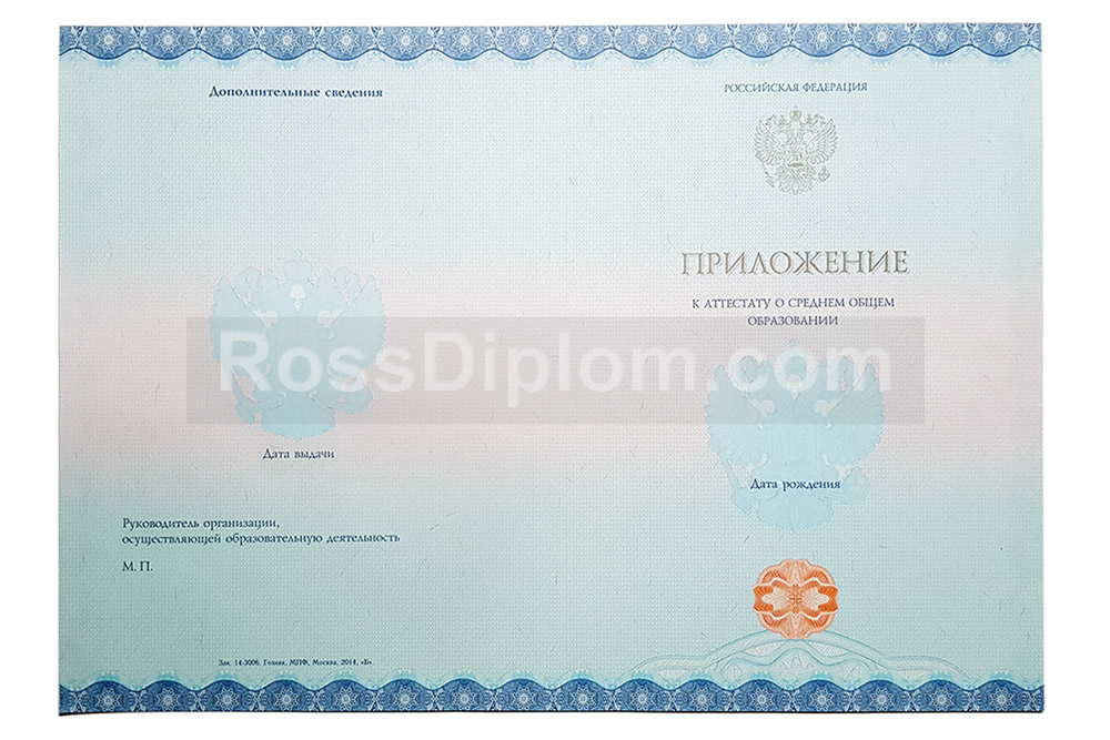 Аттестат за 11 класс свидетельствует о том, что человек проучился 10 или 11 лет в общеобразовательной школе, и без него невозможно поступить в ВУЗ, подтвердить свою успеваемость при зачислении в колледж, официально трудоустроиться на должности, где не требуется профессиональное образование. Если Вы потеряли документ, или не доучились, или не устраивают оценки, или есть еще какие-то причины, почему невозможно получить документ официальным путём, предлагаем Вам купить аттестат за 11 класс такой же, какой выдают в школах России. Мы используем только настоящие корочки «Гознак», заполняем о стандартам, заверяем актуальной печатью школы, подписью директора.